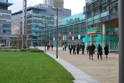 Photo: Home of the Beeb - BBC Media City, Salford, Manchester, photo by Geoffrey Davies