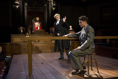 Richard Clothier is excellent as Sir Wilfred, a good, solid lawyer who will go all out to defend a man he truly believes is innocent. Harry Reid portrays Leonard Vole as a likeable, nai¨ve and charming man whose only fault is that his kindness gets him taken advantage of. He really brings home the very sinister side to the story, that one can be accused of a murder and have no way of proving one’s innocence. Despite having little stage experience, Mr Reid has just the right combination of naturalness and size in his performance. Although a good part of the beginning is exposition as Leonard tells his long story, it kept me completely absorbed. Lucy Phelps as Romaine Vole has a difficult job as her character is very changeable. It must be obvious that Romaine is hiding something and yet it seems she gives the game away too quickly in her first scene. It may be suitable that her character is always theatrical but it also meant she was less believable when she testified.